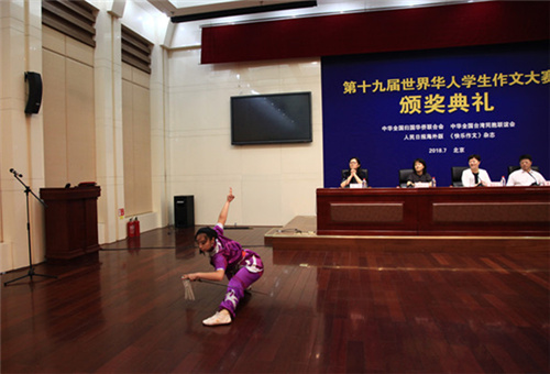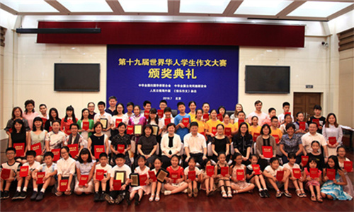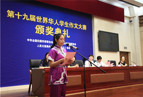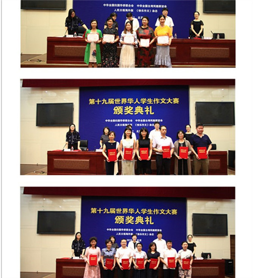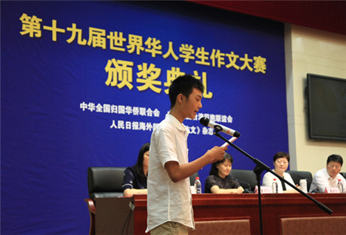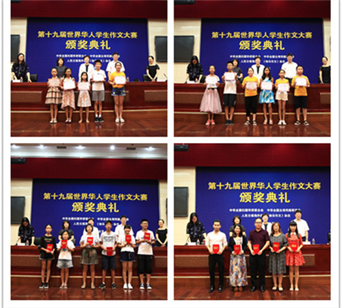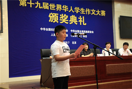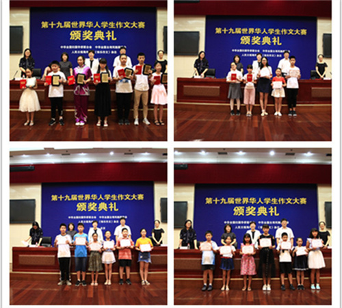 中国侨联、全国台联、人民日报海外版、《快乐作文》杂志等单位的领导向获奖者颁发了证书。人民日报海外版科教部主任刘菲宣布第二十届世界华人学生作文大赛启动。《快乐作文》杂志总编辑关平主持颁奖典礼。