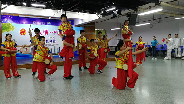 华裔青少年们为大家呈现了一场精彩纷呈的汇报演出,以轻歌曼舞、话剧、武术表演等形式展示了十多天以来的学习成果,表达对祖(籍)国的一片深情,现场不时响起热烈的掌声和欢呼声。