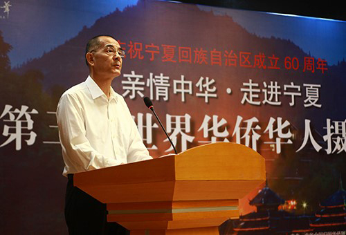 朱奕龙代表中国侨联在致辞中表示,宁夏素有“塞上江南”之美誉,这里兼具大漠戈壁的雄浑壮阔与水乡泽国的旖旎秀丽,荟萃游牧文明的恣意绽放与农耕社会的历史积淀。近年来,在自治区党委、政府坚强领导下,全区人民全力推动创新驱动战略、脱贫富民战略、生态立区战略,在经济社会文化等领域取得长足发展。今年,恰逢宁夏回族自治区成立60周年,在美丽富饶的宁夏举办此次巡展,正是为了向宁夏人民表示敬意,为宁夏在改革开放四十年取得的成就喝彩,为在新时代建设继续开拓前行的宁夏人民加油鼓劲!我们衷心希望通过这次巡展,能让更多的海内外侨界人士认识宁夏、了解宁夏、关注宁夏,积极搭建宁夏参与世界交流与合作的平台,助力宁夏经济的不断蓬勃发展!