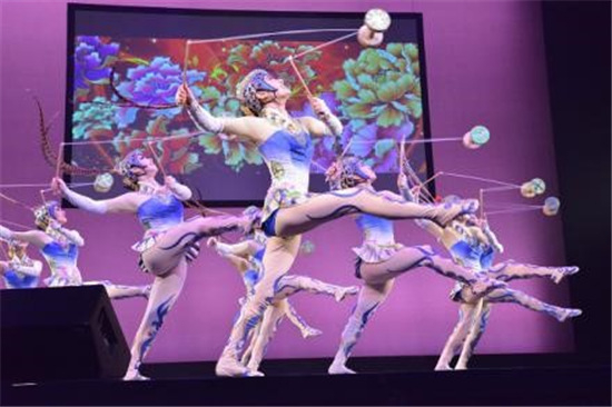 晚会以中国杂技团表演的精彩节目《转花碟》开场。满台生辉的转碟,营造出了“百尺游丝争树绕,一群娇鸟共鸣花”这一如诗如画的意境,“跑肩过头顶”等多个高难技巧组合和“牌楼转碟” 造型,更是让人赏心悦目。中国杂技团的年轻演员们可谓身怀绝技,其表演让人惊叹不已,《蹬伞》,时而侧飞,时而走边,时而大摆,飘逸中深藏几分沉稳。柔术节目《青狸》,演员将肢体的柔软与杂技的技巧巧妙结合,展现出“力”与“美”。《指尖流奏—拍球》用掷地反弹方式表演球技,同时掷耍9球让人眼花缭乱、击掌叫绝。