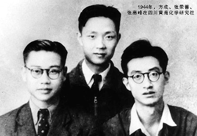 1933年,方成考入北平弘达中学,与同龄的张高峰成为好友。1937年,北平“七七事变”,华北沦陷,抗战爆发,方成与张高峰分别南下,一个休学回乡,一个从事抗日宣传。方成1939年北上入川,到内迁乐山的武汉大学就读化学系,张高峰1940年以同等学历插班入读武大政治系。好友重逢,分外亲切,两人虽不同系,但有共同的兴趣爱好——演话剧、出壁报,再度同窗生活,并且同于1942年毕业。方成到距乐山不远的五通桥黄海化学研究社工作,张高峰被重庆大公报派往中原做战地记者。1944年中原会战后,张高峰回到重庆负责川西报道。“黄海”是著名的“永久黄”化工实业团体,张高峰多次采访,每次必去看望方成。方成保存至今在“黄海”的珍贵照片中,就有他俩与另一位同学张荣善的合影。1981年,张荣善从美国回来探亲,三人欢聚,还特别以当年同样的位置合影,成为跨越37年的一段佳话。