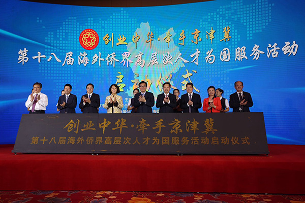 为贯彻中国侨联“十代会”精神,充分发挥海外侨界智力密集、人才荟萃的优势,广泛吸引海外侨界高层次人才,引进高科技项目,为推动京津冀协同发展贡献侨界力量,9月13日-19日,由中国侨联、北京市侨联、天津市侨联、河北省侨联共同主办的“创业中华·牵手京津冀”——第十八届海外侨界高层次人才为国服务活动成功举办。来自美国、加拿大、德国、法国、芬兰、罗马尼亚、日本、泰国、新加坡、澳大利亚、智利等11个国家的66位海外侨界人才参加了本届活动。
