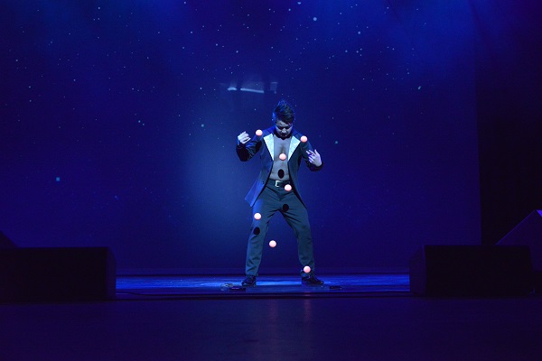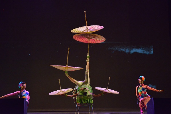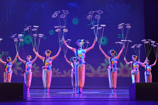 中国杂技团为侨胞表演《俏花旦-抖空竹》