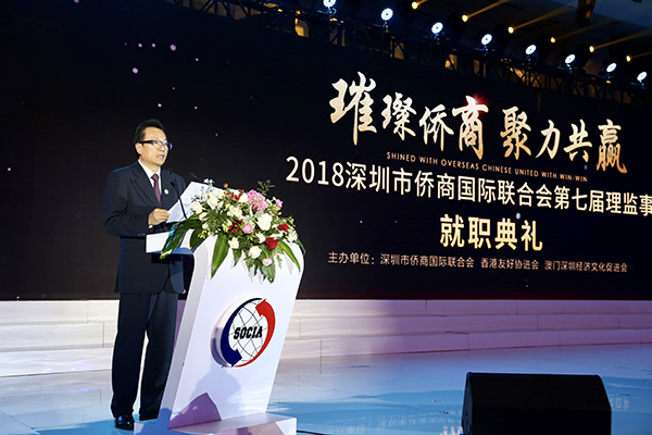 他表示,粤港澳大湾区建设已经成为广东和深圳改革开放的大机遇、大文章。希望深圳市侨商国际联合会在新一届理监事班子的带领下,能够组织引导更多的海内外侨商以多种形式参与到粤港澳大湾区和“一带一路”建设,在实现个人事业发展的同时,积极促进粤港澳大湾区人员、货物、资金、技术、信息等资源要素的流动,推动政策环境和体制机制的创新探索,助力湾区加快形成区域一体化发展新格局。