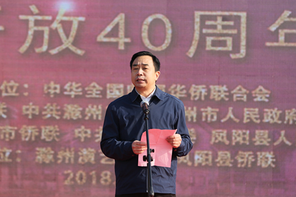 晚会开始前,中国侨联副主席齐全胜致辞,他说:“侨界联系广泛、人才济济,理应发扬光大大包干精神、小岗精神,以满腔爱国之情、报国之志投身新时代改革开放实践,同圆共享中国梦。”“希望侨界对小岗村的进一步发展,对安徽和全国乡村振兴战略的实施,积极献智出力,做出更多贡献。”
