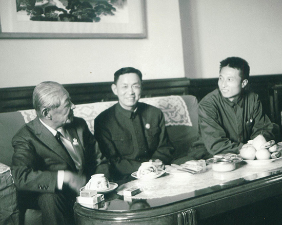 1971年时任中国奥委会宋中(中)在北京会见日老友中岛(左),作者(右)任翻译