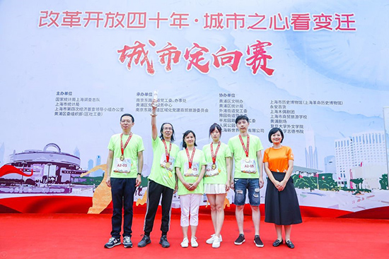 2018年9月22日,作者郭开华(左二)等人组成的侨联青委会在“改革开放四十年·城市之心看变迁”城市定向赛中,战胜了其他80多支参赛队伍荣获冠军