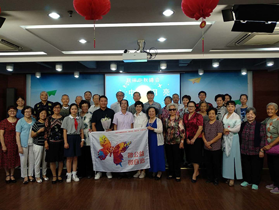 “微公益 微自治”是花木侨联的一个品牌项目,给老归侨“线上送关爱 线下送温暖”,图为中秋佳节前夕送月饼合影留念