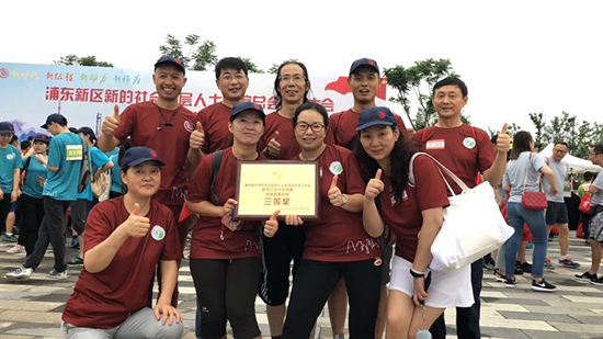 2018年7月7日,浦东新区新的社会阶层人士联谊总会成立大会暨滨江活力定向赛圆满结束,郭开华(后中)率领队友荣获三等奖