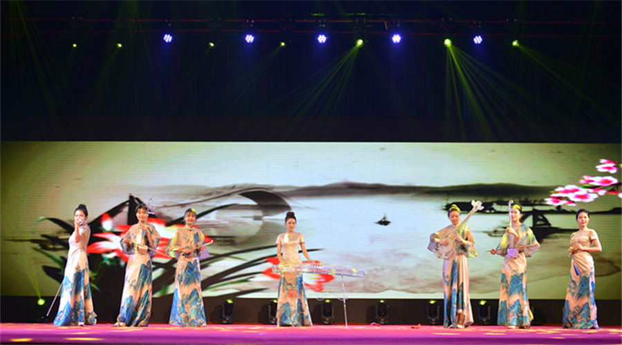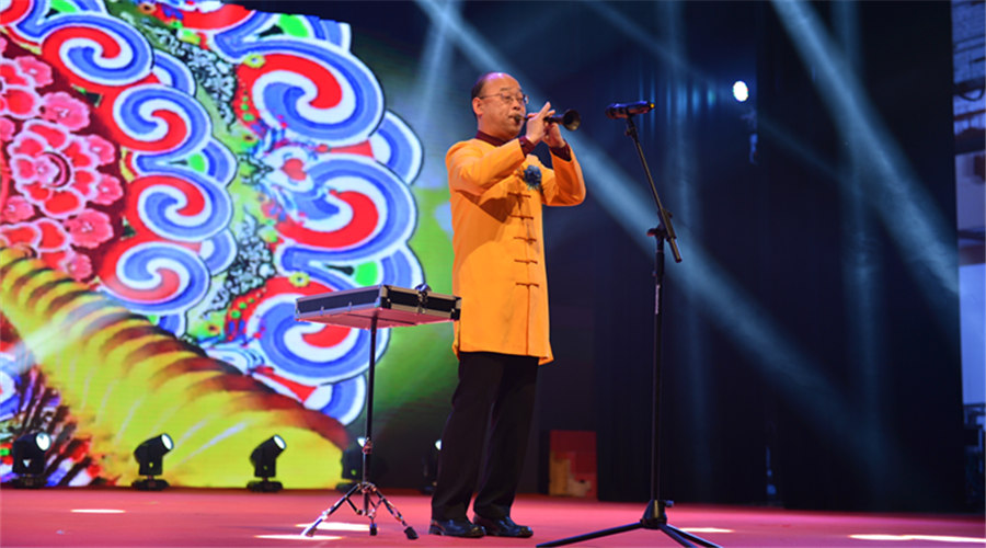 中国戏曲学院孙云岗副教授用唢呐等10种吹管乐器演奏一曲《华夏同心曲》,女子水晶乐坊深情弹唱《我爱你中国》,东方歌舞团郭蓉激情高歌《红旗飘飘》,抒发航天科技工作者情系桑梓、赤诚报国的爱国热忱。