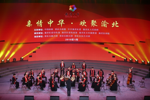 重庆市渝北区体育馆,来自渝北区30个镇街的近三千名侨界群众和居民朋友们闻讯而至,欢欣愉悦满怀期待。演出在热烈欢腾的民乐表演《春节序曲》中拉开序幕,美好欢快的《花好月圆》为大家献上了新年的祝福。