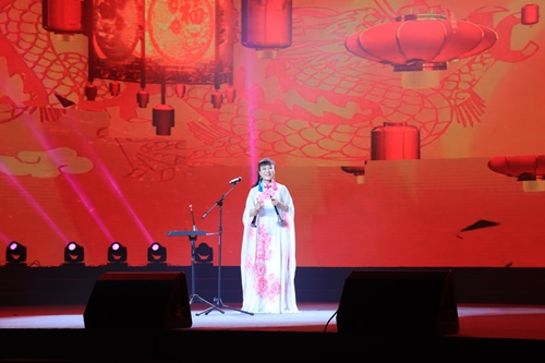 中国侨联文化交流部副部长邢砚庄在演出前致辞,代表中国侨联和万立骏主席向现场的归侨侨眷和回乡探亲的海外侨胞拜早年,并向全区归侨侨眷、海外侨胞致以诚挚的问候和新春的祝福。并表示,在新春佳节来临之际,希望通过这台综艺节目,为渝北侨界群众和父老乡亲送上节日的祝福!今年恰逢新中国成立70周年,这场演出也是对祖国华诞的献礼。