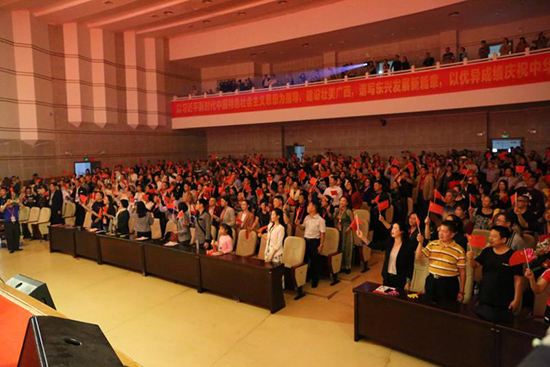 晚上,在东兴市人民会堂举行了“亲情中华”专场演出,来自首都的歌唱家江涛、周旋、郭蓉和广西的艺术家为海外侨胞和东兴市归侨侨眷献上了精彩节目。