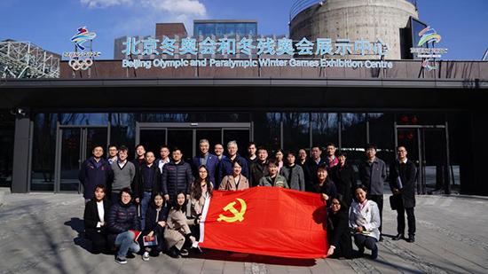 在展示中心,北京冬奥组委新闻宣传部党支部的党员带领参观并现场讲解,全体党员同志深入了解中国冰雪运动悠久的历史,观看了利用数字影像技术“活化”的故宫馆藏文物清代《冰嬉图》,感受先进科技手段在奥运展示中的充分运用。同志们还看到了叶乔波、杨扬等具有代表性的运动员所获奖牌,以及冰鞋等运动装备实物,了解运动员拼搏进取的励志故事,学习奥林匹克精神。在冬奥整体规划沙盘区域,通过视频和声光电技术生动、立体地呈现,同志们全方位地了解了北京、延庆、张家口三个赛区地理地貌、历史文化,以及场馆设施建设推进情况,充分体会奥运标准和中国速度所带来的震撼。通过实地参访考察,同志们真切感受到以科技手段展现的“冬奥故事”,深刻体会到绿色、共享、开放、廉洁的办奥理念,以及冬奥会作为推进京津冀协同发展重要抓手,在实现“两个一百年”奋斗目标中的重要作用。北京冬奥组委新闻宣传部党支部书记常宇全程陪同参观。