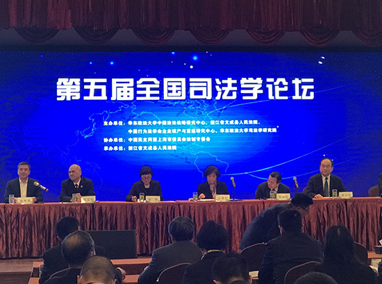 2019年4月13日,由华东政法大学中国法治战略研究中心、浙江省文成县人民法院、中国行为法学会企业破产与重组研究中心、华东政法大学司法学研究院共同主办,中国民主同盟上海市委员会法制专委会协办的“第五届全国司法学论坛”在浙江文成举办。本次论坛以“涉侨纠纷多元化解机制暨企业破产与重组研究”为主题,邀请全国各地政法机关、高等院校、科研机构的专家学者出席并举办主题征文颁奖仪式。中国侨联法顾委常务副主任、最高人民法院咨询委员会副主任王秀红,中国侨联法顾委秘书长、权益保障部部长张岩出席论坛并讲话。