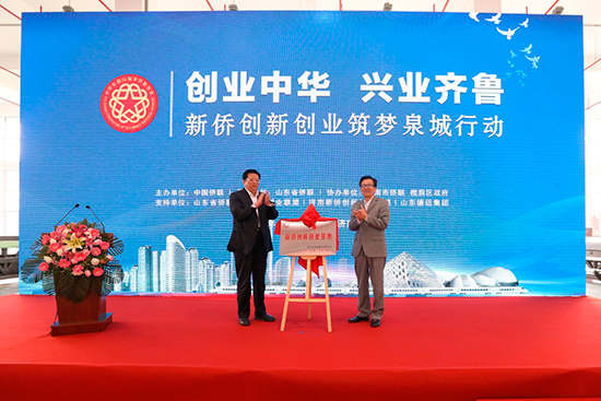(李卓彬副主席和济南市委副书记苏树伟为侨创基地揭牌)