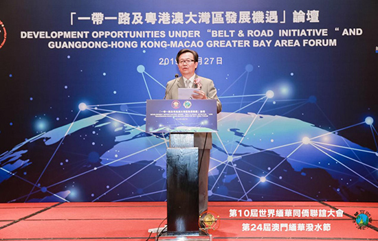 在开幕式后举行的“一带一路”及粤港澳大湾区发展机遇论坛上,李卓彬着重阐述了对习近平主席在“第二届‘一带一路’国际合作高峰论坛”开幕式上主旨演讲精神的理解和体会。他表示,推动“一带一路”高质量发展为广大华侨华人带来了许多新的发展机遇,“第二届‘一带一路’国际合作高峰论坛”上习近平主席提出的许多有力举措和条件都将为华侨华人特别是广大侨企谋求发展、借力转型、提质增效的十分难得的机遇。他倡议,广大侨胞要充分发挥海外侨胞人口规模和商业网络优势、充分利用侨的民间友好交往优势、充分把握新一轮科技和产业变革带来的机遇,在助力“一带一路”拓展延伸、厚植“一带一路”民意基础、助推“一带一路”创新升级等方面发挥更大作用,作出更大贡献。