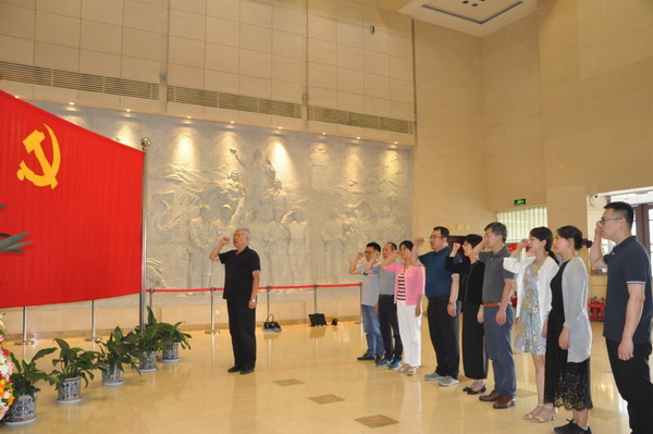 在周恩来邓颖超纪念馆,支部书记左志强带领全体党员重温入党誓词,面向鲜红的党旗,郑重举起右手,庄严宣誓,重温对党的誓词和承诺,不忘入党初心。随后,大家满怀敬仰之情,参观了周恩来生平展、邓颖超专题展,追忆他们信仰坚定、热爱人民、光明磊落、无私奉献的一生,全体同志深切感受到两位伟人为祖国和人民鞠躬尽瘁的优秀品格和崇高精神,受到了心灵的净化和洗礼。