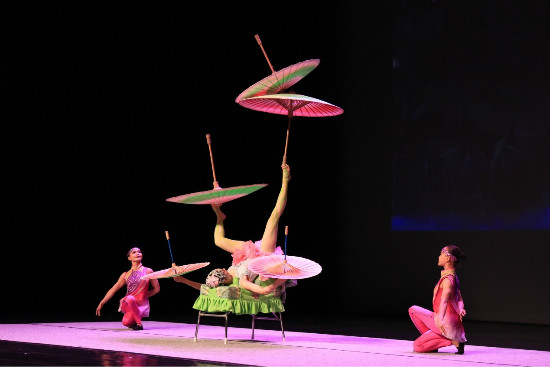 神乎其技、叹为观止……高难度的技巧、唯美的舞姿、起伏的音乐,中国杂技团带来的《大武术》《痴梦凝相思》《顶碗》《蹬伞》《激踏·球技》等精品节目,展现了杂技艺术刚与柔、力与美、形与体的完美融合。