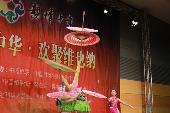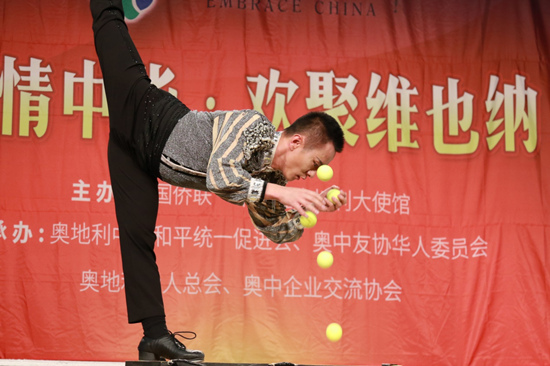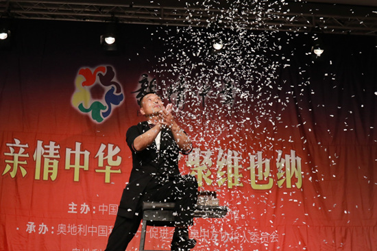 7月5日晚,中国侨联“亲情中华”艺术团来到有“世界音乐之都”之称的奥地利维也纳,为广大侨胞和当地观众献上了一台集杂技、歌曲、魔术为一体的、令人难忘的艺术盛宴,向当地民众展现了异彩纷呈的中华文化,同时也为侨胞们送上了祖(籍)国的温暖和问候。