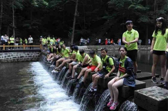 三角龙湾森林公园位于吉林省辉南县,是进入长白山的门户之一,那里有保留完整的中国最大火山口湖群,既有原始的火山地貌风光,也造就了独特的植物群落,形成了林水相依的独特景观。于三角龙湾的青山翠谷间,营员们沿着临潭栈道一路畅快步行,仿佛踏舟水上,留下一路欢声笑语。行至吊水壶瀑布,看到水击岩石、如练飞瀑,大家更是直呼神清气爽,开阔心胸,赞叹不已。