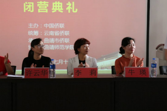 7月16日下午,由中国侨联主办,云南省侨联和曲靖市侨联承办,曲靖师范学院协办的2019年“寻根之旅”夏令营—云南曲靖第一营闭营仪式在曲靖师院古城校区举行。曲靖市侨联主席许云华、副主席牛瑛及曲靖师范学院副校长李莉参加闭营仪式。