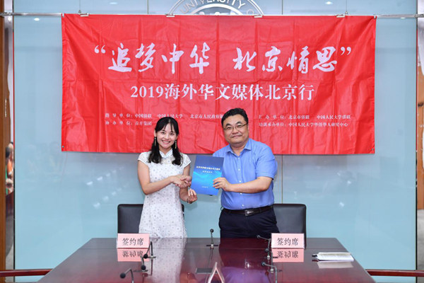 4日下午,华文媒体在中国人民大学进行了座谈交流。会上,北京市侨联与华文媒体就“讲好中国故事 传播中国声音”、推介首都北京等达成一致意见,并签订了合作协议。