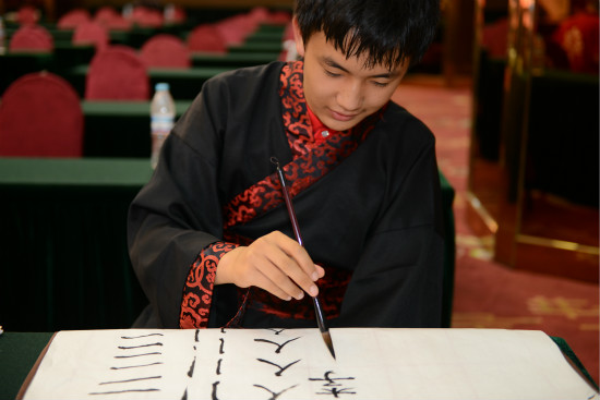 仪式结束后,营员们兴奋地换上汉服,在济南市青年书协副主席赵新成的带领下,体验传统的开笔仪式,学习汉服的穿着方法和礼仪。随后,营员们拿起毛笔,开始了书法课程的学习,一撇一捺,有模有样。