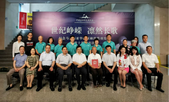 7月30日上午,“世纪峥嵘 凛然长歌——纪念马来西亚华教领袖沈慕羽逝世十周年书法展”在中国华侨历史博物馆开幕。展览由中国华侨历史博物馆、泉州市侨联、泉州华侨历史博物馆、沈慕羽书法文物馆(马来西亚 马六甲)共同主办。中国侨联顾问乔卫出席开幕式并为沈慕羽书法文物馆颁发牌匾,中国侨联副主席齐全胜出席开幕式并为沈慕羽亲属代表沈墨义颁发中国华侨历史博物馆捐赠证书。