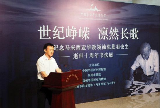 侨博副馆长祁德贵在开幕式上致辞,表示沈慕羽的一生是为马来西亚的华文教育奔走呼号、不懈奋斗的一生,是积极反抗侵略、持续战斗的一生,也是将中华文化尤其是书法艺术在海外推广、无私奉献的一生。