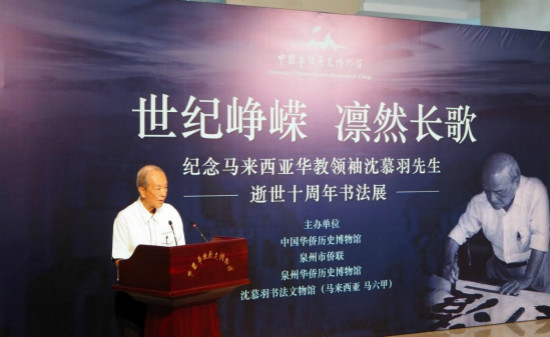 泉州市侨联副主席钟文玲在致辞中介绍,沈慕羽生前十分关心家乡发展,曾于96岁高龄撰写“海滨邹鲁 泉郡圣贤”巨幅书法作品赠予泉州华侨历史博物馆收藏。举办此次展览将使沈慕羽的感人事迹广为传播,也将推动中马间的文化交流、文明互鉴,在促进“一带一路”民心相通上发挥积极作用。