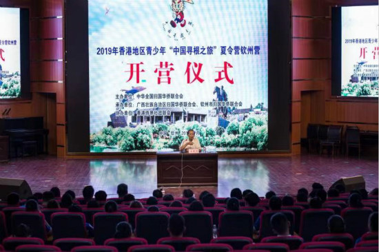 7月29日,由中国侨联主办,广西自治区侨联、钦州市侨联承办,香港侨届社团联会协办的2019年“寻根之旅”夏令营—广西钦州营开营仪式在钦州市第二中学举行。来自香港地区的37名学生及领队老师相聚钦州,开启为期10天的“寻根之旅”夏令营。