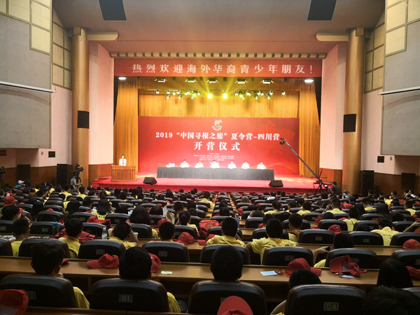 8月2日上午,由中国侨联主办,四川省侨联、成都市侨联、南充市侨联、巴中市侨联、遂宁市侨联、泸州市侨联、乐山市侨联、德阳市侨联、广元市侨联、绵阳市侨联,成都理工大学、成都中医药大学、绵阳师范学院联合承办的2019“中国寻根之旅”夏令营四川营在成都举行开营仪式。来自美国、加拿大、德国、荷兰、新西兰、西班牙、意大利、比利时、瑞典、英国的千余名海外华裔青少年参加开营仪式。四川省委副书记邓小刚、中国侨联副主席齐全胜等出席开营仪式,中国侨联兼职副主席、四川省侨联主席刘以勤主持。