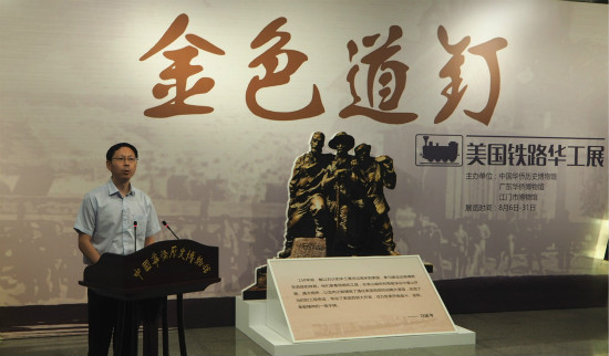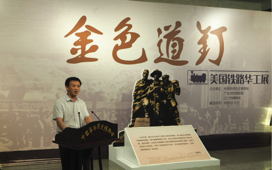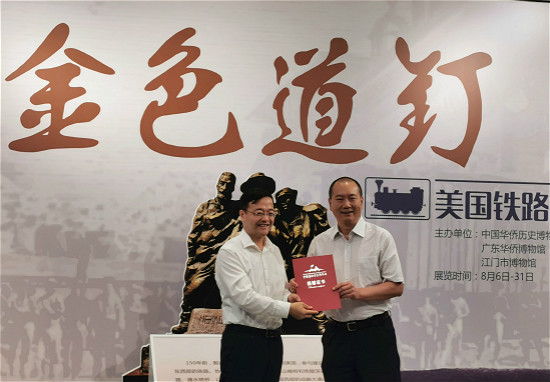 8月6日上午,在横贯美国大陆铁路建成150周年之际,“金色道钉——美国铁路华工展”在中国华侨历史博物馆开幕,共展出历史图片130余幅、实物展品80余件。展览由中国华侨历史博物馆、广东华侨博物馆、江门市博物馆共同主办。中国侨联副主席齐全胜出席开幕式,并为长期跟踪研究美国华工历史影像的摄影师李炬颁发了捐赠证书。
