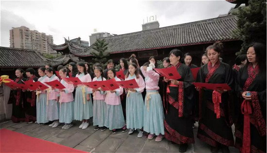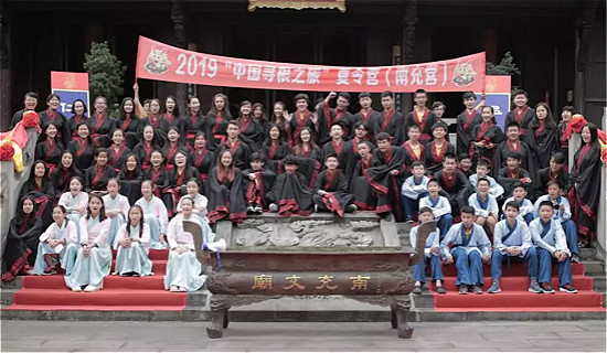 8月3日上午,来自美国、加拿大、澳大利亚的70余名华裔青少年,身着汉服、手捧论语,在祭奠孔子的庄严仪式中开启了2019年“寻根之旅”夏令营—四川南充营的精彩旅程。