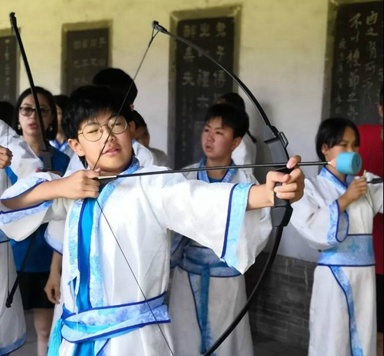 “有朋自远方来,不亦乐乎”,传统文化课老师用《论语》向孩子们问好。“温故而知新,可以为师矣”,孩子们现学现用,向老师致敬。一个个草原小勇士们还学习了《国学礼·射艺》,并实际体验了草原弯弓射大雕与中原百步穿杨的不同射箭技艺,体会草原文化和中原文化的差异。