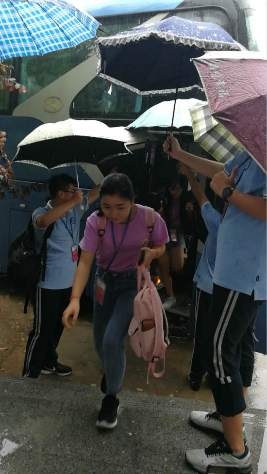 受超强台风“利奇马”的影响,8月10日夜至11日上午连云港市连降暴雨,灌南县城人民路受淹严重,营地内积水盈尺,给营员出行带来困难。夏令营领导小组连夜研究,并作出指示,汽车行驶到离目的地最近的位置停靠,从下车到餐厅、教室等活动场所的路上用凳子摆成临时行桥,保证营员身不遭雨,脚不涉水,所有营员上下车须有公安、保卫人员护行,以防意外事故发生。