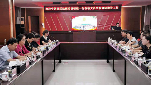 调研期间,调研组一行深入海南省一中院、文昌市法院、侨资企业、律所,与省、市侨联干部,司法系统干部,省、市法顾委委员、侨商等开展座谈交流,访侨情、听侨声,谈问题、讲对策,共同研讨如何做好新时代维护侨益的工作。在文昌,调研组上午走访了文昌海南聚龙投资控股有限公司、海南维嘉房地产开发有限公司,了解侨资企业发展情况,听取对侨联工作的意见建议,引导和动员侨界力量,为海南省自贸区发展发挥作用;下午在文昌法院进行座谈交流,了解海南省及文昌市开展涉侨纠纷多元化解试点机制建立和运行情况、分析存在的主要问题、探讨改进设想与举措。在海口,实地走访省一中院第一涉外民商事法庭,现场观摩海口市12345接警平台工作,参观海南法立信律师事务所,了解海口市侨联依法维护侨益情况和特色工作。