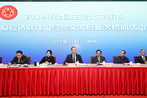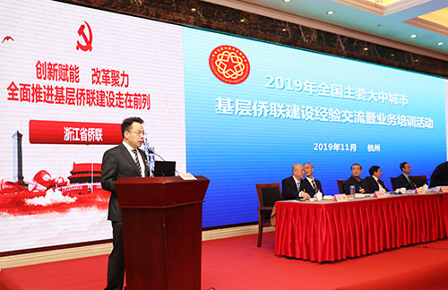 11月13日,中国侨联在浙江省杭州市举办2019年度全国主要大中城市基层侨联建设经验交流暨业务培训活动。本次活动主题是:以习近平新时代中国特色社会主义思想为指导,深入学习贯彻习近平总书记关于侨务工作的重要论述,学习贯彻党的十九届四中全会精神,围绕中国侨联改革要求和十代会工作部署,突出分类指导,总结交流大中城市侨联基层组织建设的经验,以开拓创新、奋发有为的实际行动,推动侨联基层组织建设实现新发展。中国侨联党组书记、主席万立骏出席并讲话,中国侨联副主席李卓彬主持活动。浙江省委常委、组织部部长黄建发、全国组织统一社会信用代码数据服务中心主任宿忠民分别致辞。浙江省政协副主席、中国侨联兼职副主席吴晶,杭州市委副书记张仲灿,杭州市政协副主席王立华等出席活动。来自全国各省侨联、副省级、省会城市和部分侨乡地区地市侨联负责人约200人参加活动。