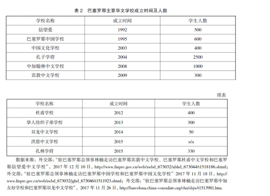 西班牙华人经济中,与教育有关的行业依据教育对象整体可分为两类:一是以二代移民为目标群体的华文教育。西班牙的华文教育早在20 世纪90 年代便已出现,但受制于师资和学生数量,发展较为缓慢。2008 年后,这一领域发展迅速,直观体现在学校数量增加、办学规模扩大(见表2)。