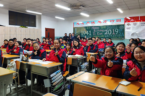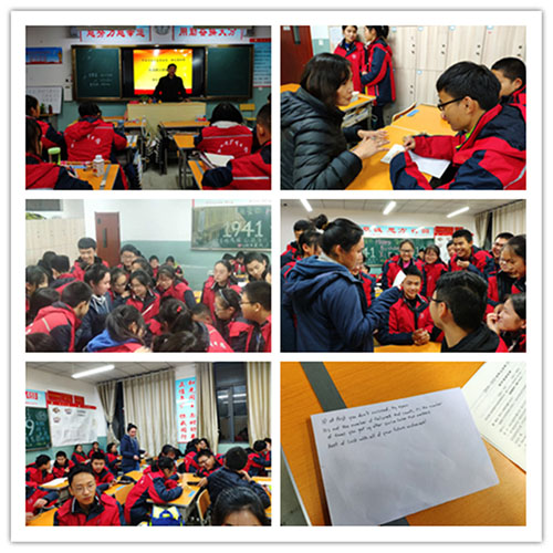 来自美国的的徐靖阿姨和Jennifer Rios和“怡海树人班”的同学们分享了小礼物,和大家现场英文互动,几个机灵的男同学不失时机地从抽屉里找出几张英语“完形填空”、“阅读理解”卷子来,现场请教她,想看看美国人会不会我们中国的考试题,立刻围观上一大群人,Jennifer rios现场写下了对同学们的祝福寄语。大家都是相近的年龄,但不同的文化背景,聚在一起交流碰撞思想的火花,其乐融融。