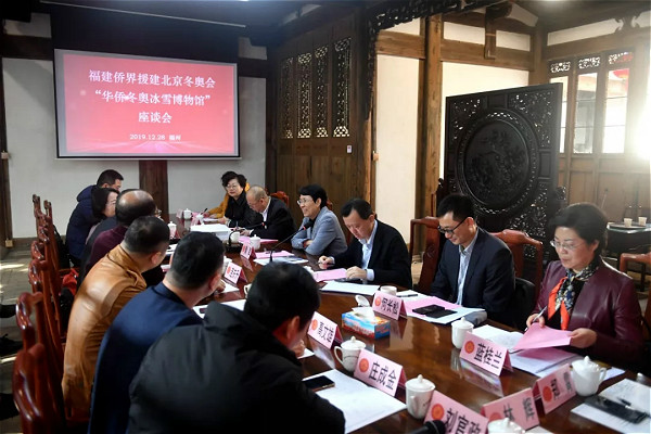 2019年12月28日上午,福建省侨联举办捐建“华侨冬奥冰雪博物馆”活动座谈会,中国侨联党组成员、副主席隋军出席座谈会并讲话,福建省侨联党组书记、主席陈式海主持,来自美国、加拿大、法国、英国、新西兰、菲律宾、蒙古国、安哥拉等国家和地区的十余位海外侨领代表参加座谈交流。