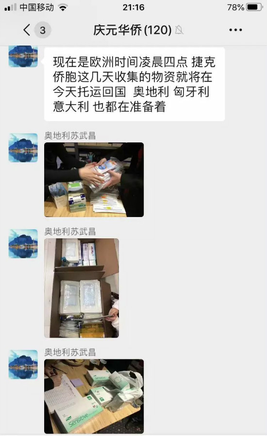 庆元县侨联副主席、欧洲浙江总商会会长叶庆盛,欧洲浙江总商会副秘书长苏武昌一直在和周边国家的华人给国内筹集口罩、防护服、护目镜等疫情防控物资,目前共发动意大利、奥地利、澳洲、匈牙利、捷克、法国等国家的华人1700余人,共筹集到800件防护服,2000个护目镜,10000个3M口罩,20000个一次性医用口罩,28000个FFP2口罩口罩。这批疫情防控物资将于近日空运回国,先全部用于支援武汉。
