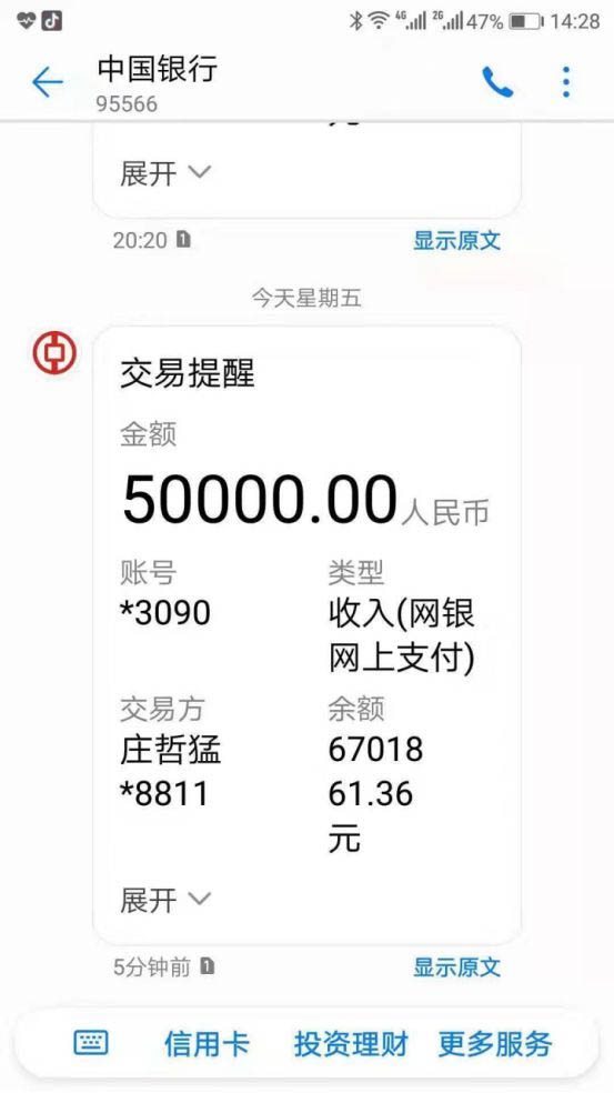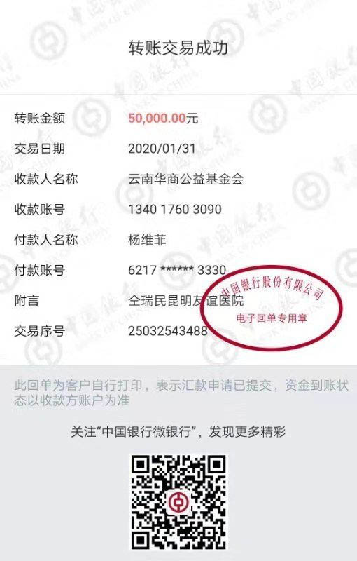 云南华商公益基金会收到云南省侨联副主席、香港同胞庄哲猛先生捐助人民币5万元,昆明侨商会常务副会长仝瑞民先生捐助5万元善款。