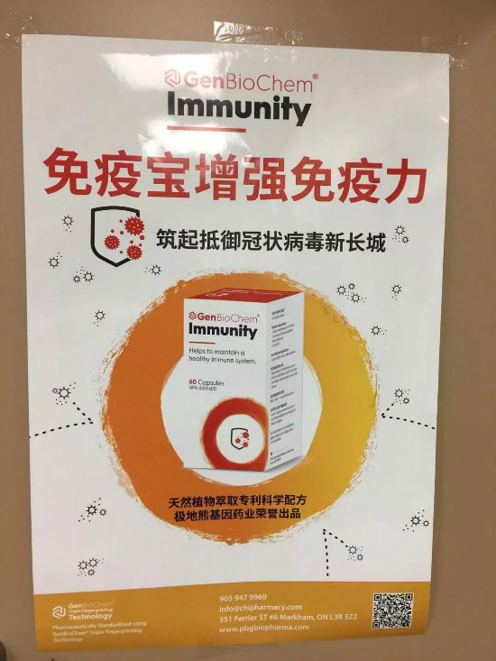 1、加拿大华侨开办的极地熊基因药业有限公司向武汉亚洲心脏病医院捐赠1008瓶GenBioChem Immunity 免疫宝,帮助医护人员增强免疫力,筑起抵抗冠状病毒新长城。捐赠总价值约为36万元。