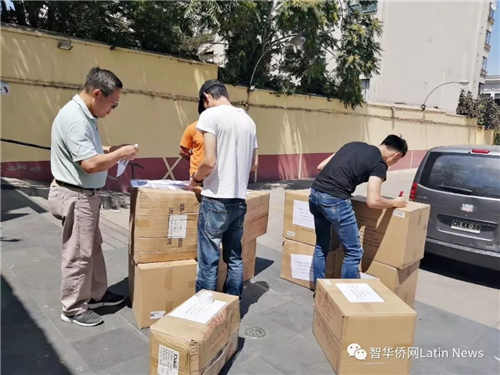 (上图为智利侨胞捐赠的抗疫医用物资)
