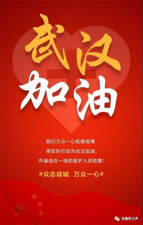 【编者按】疫情无情,人间有爱。连日来,中国国内发生的新型冠状病毒感染的肺炎疫情牵动着华侨华人的心。安徽省侨联按照党中央和省委省政府部署,积极响应中国侨联号召,于1月26日(农历大年初二)向海内外侨界发出倡议,1月29日发出紧急呼吁书。一时间,世界各地的华侨华人和皖籍侨团快速行动起来,纷纷来电来函了解捐赠渠道,并积极发起募捐,一份份爱心从海外传来,彰显出侨界“爱国爱乡”的大爱情怀。