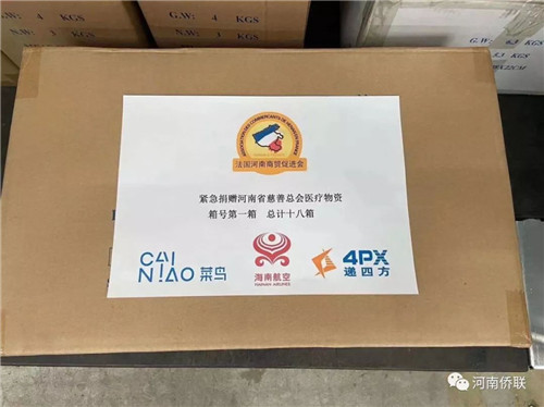 当第一批物资筹备完毕后,运送回国的问题摆在了大家面前。面对疫情,物流运输不同于以往,随时都面临停运停飞的风险。法国河南商贸促进会深入挖掘侨胞资源,迅速协调搭建保障体系,菜鸟网络、4PX递四方巴黎仓提供绿色集货通道,海南航空提供绿色运输通道。河南省侨联、河南省慈善总会、河南省红十字会、郑州海关、河南航投集团、卢森堡货运航空等部门和机构协调联动,确保了捐赠绿色通道畅通。仅用48个小时,就完成了第一批捐赠物资从集货到清关、运输方案确定成行。