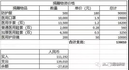 经过近一个星期不分昼夜的艰苦奋战,澳洲河南同乡会共采购捐助医用手套13500双,高邦医用鞋套8500双,医用护目镜200套,医用口罩10000只,防护服520件。