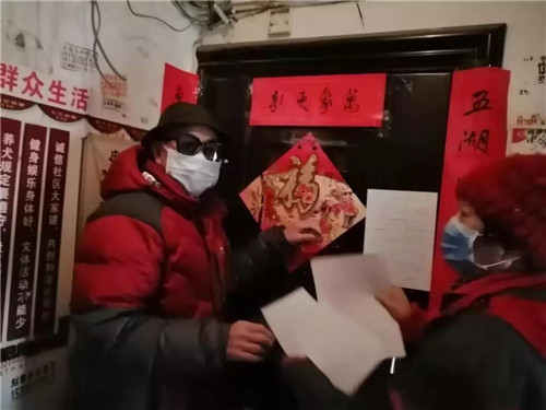 1月27日(初三)安贞侨联主席姜淑英与社区党员入户宣传预防新冠通知,〈給居民的一封信〉共两座楼102户,发信108张。